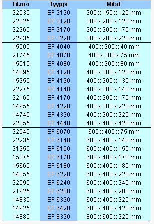 - Eurolaatikot, kantavuus 50 kg